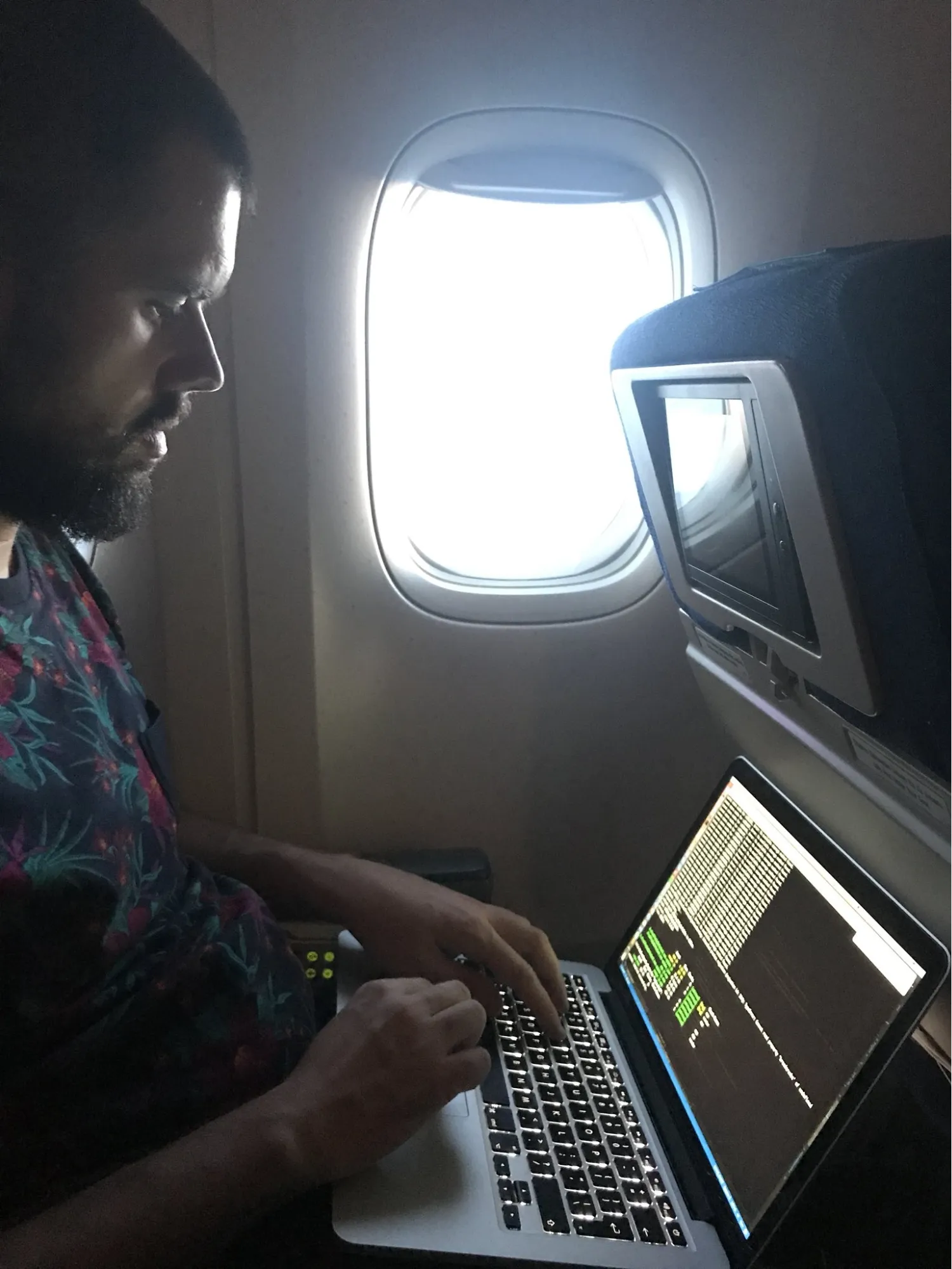 Fake it till you make it. Me, coding VSF 0.3 on the way to NYC.